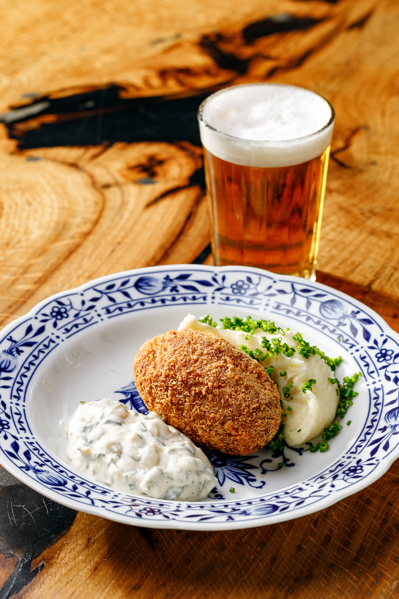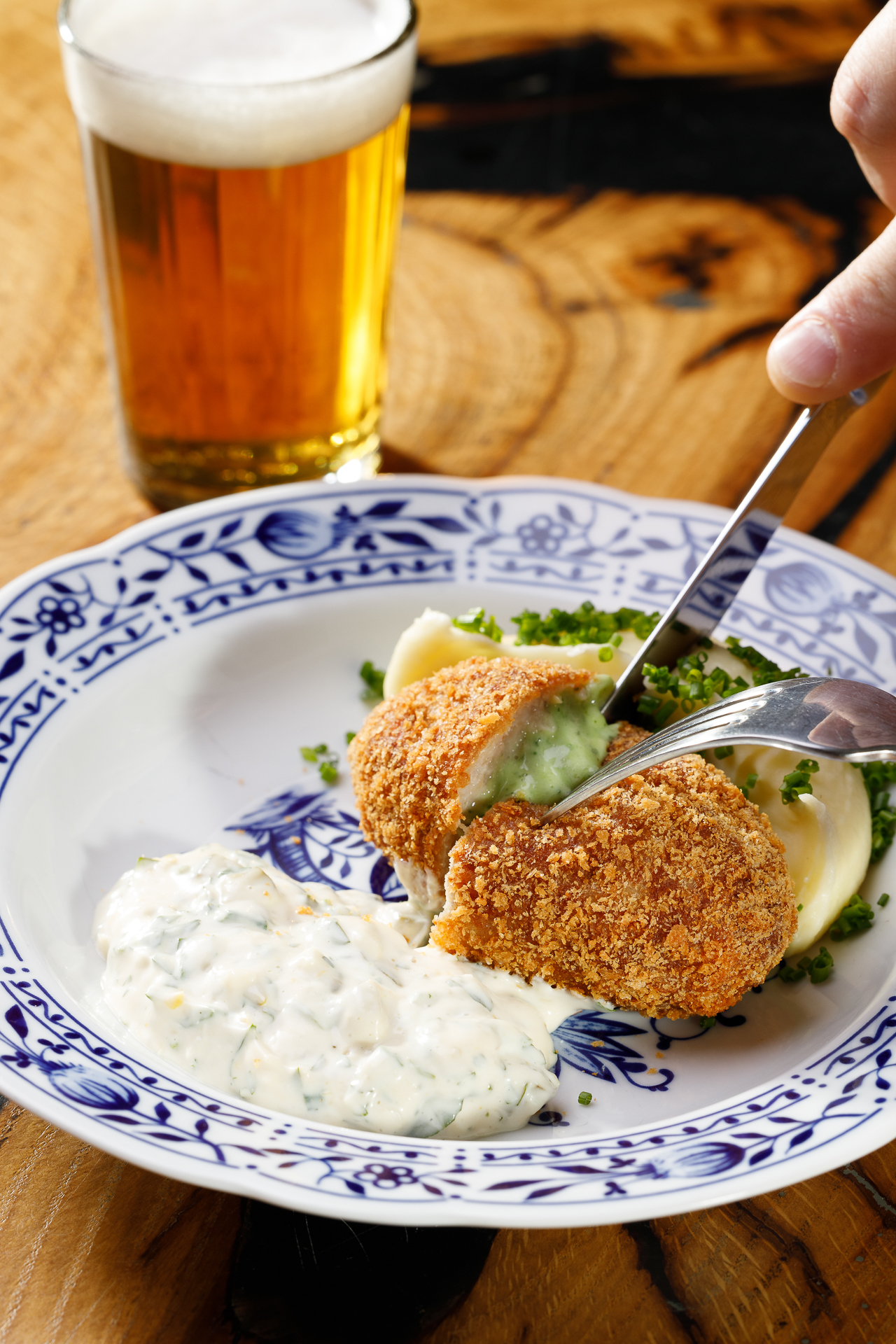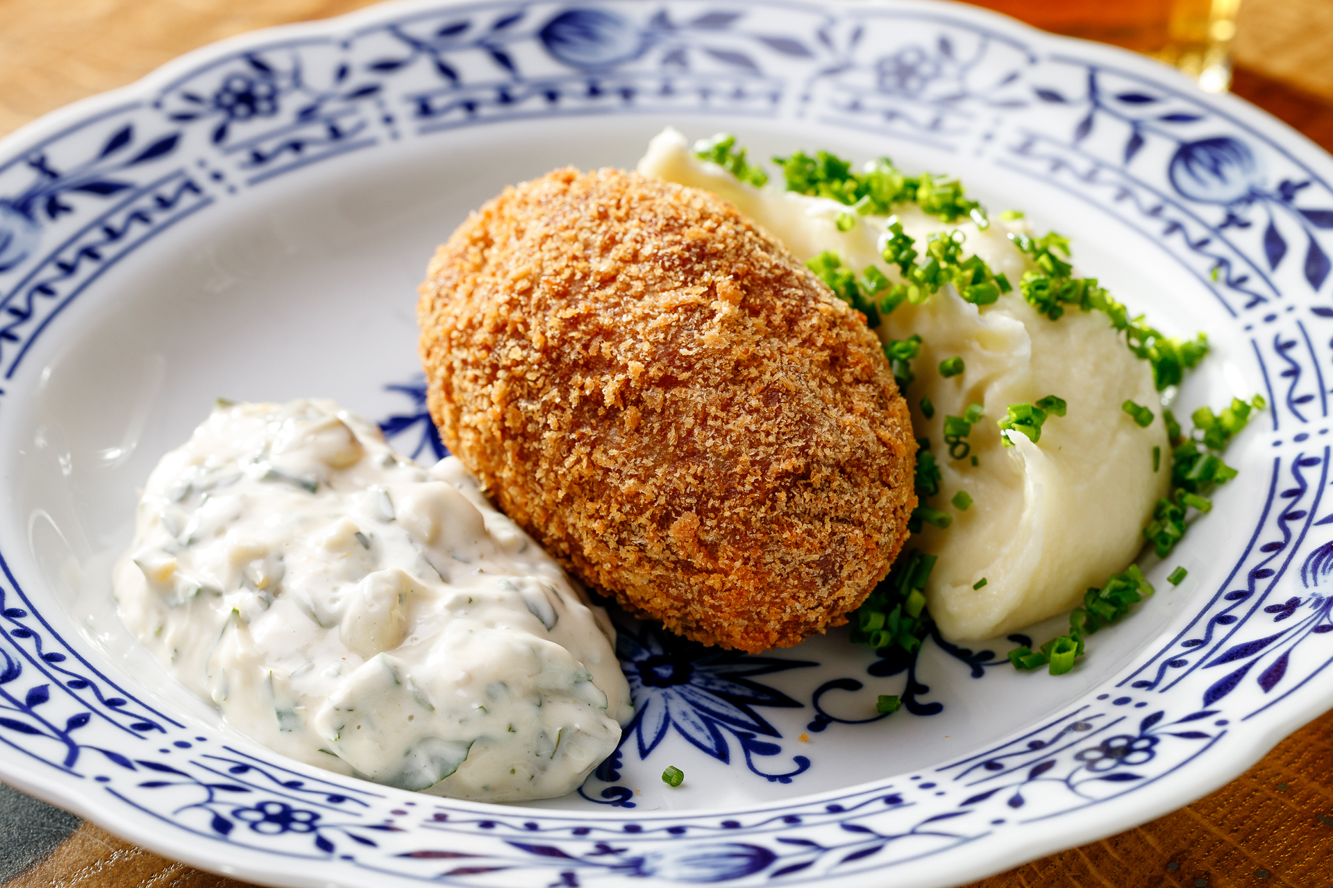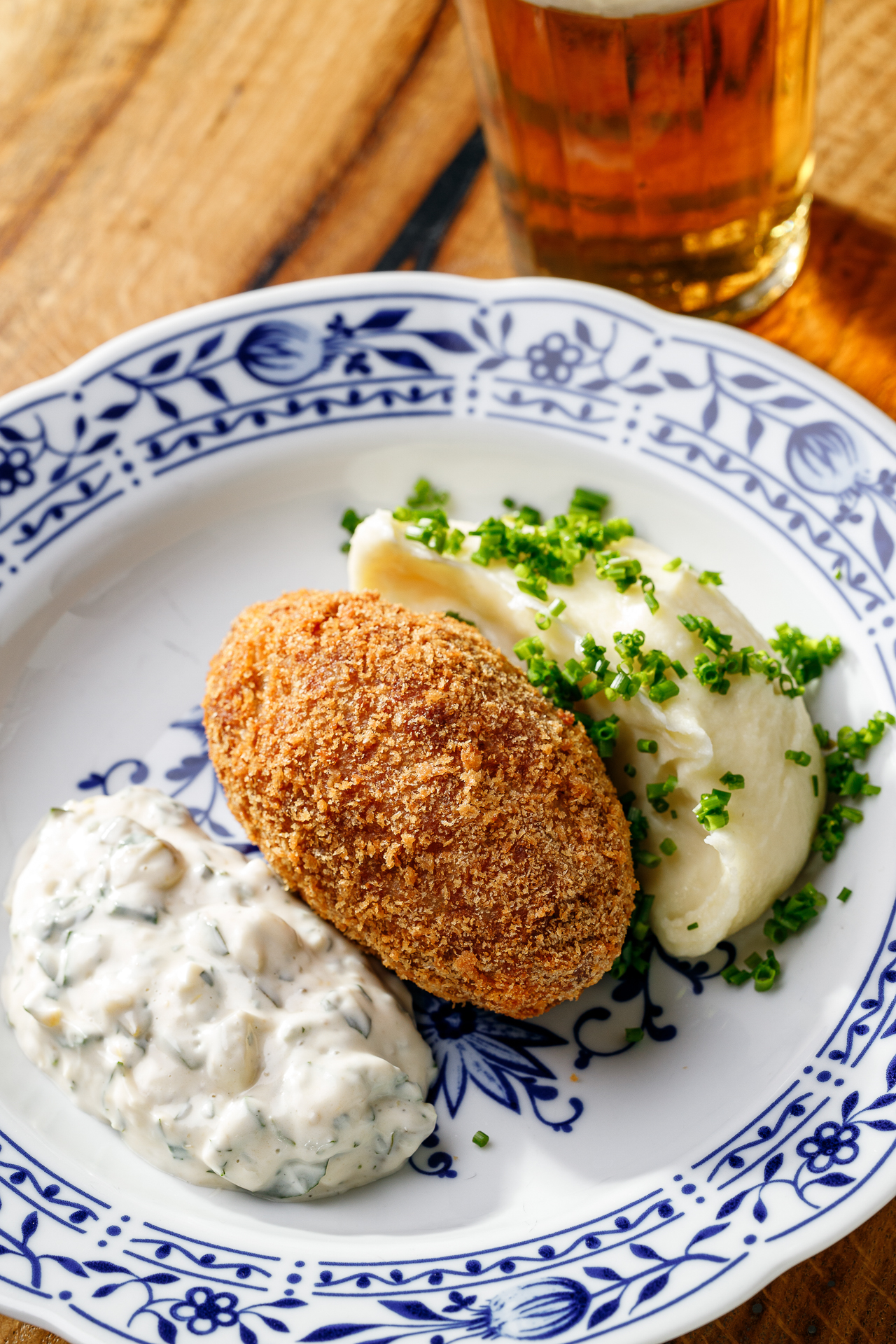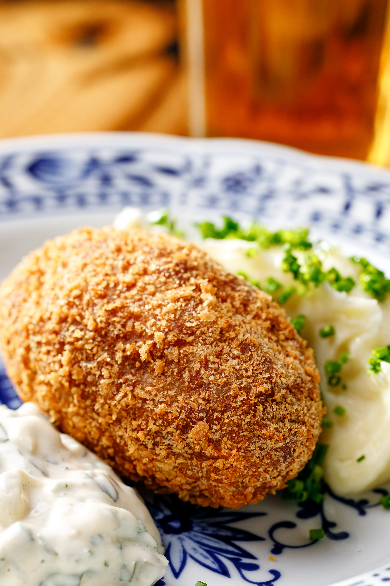 Куриная котлетка с сыром, пюре картофельное, соус грибиш