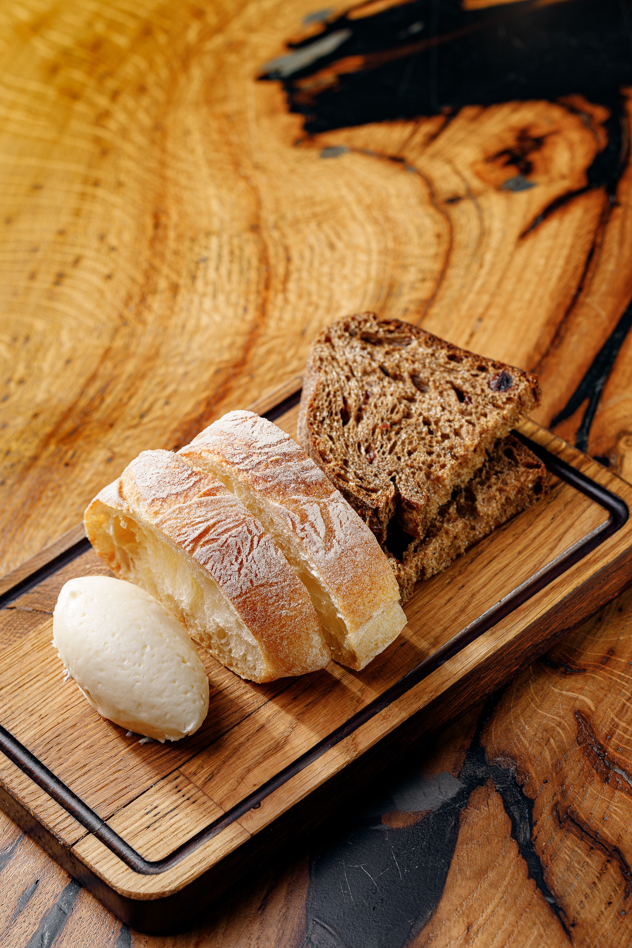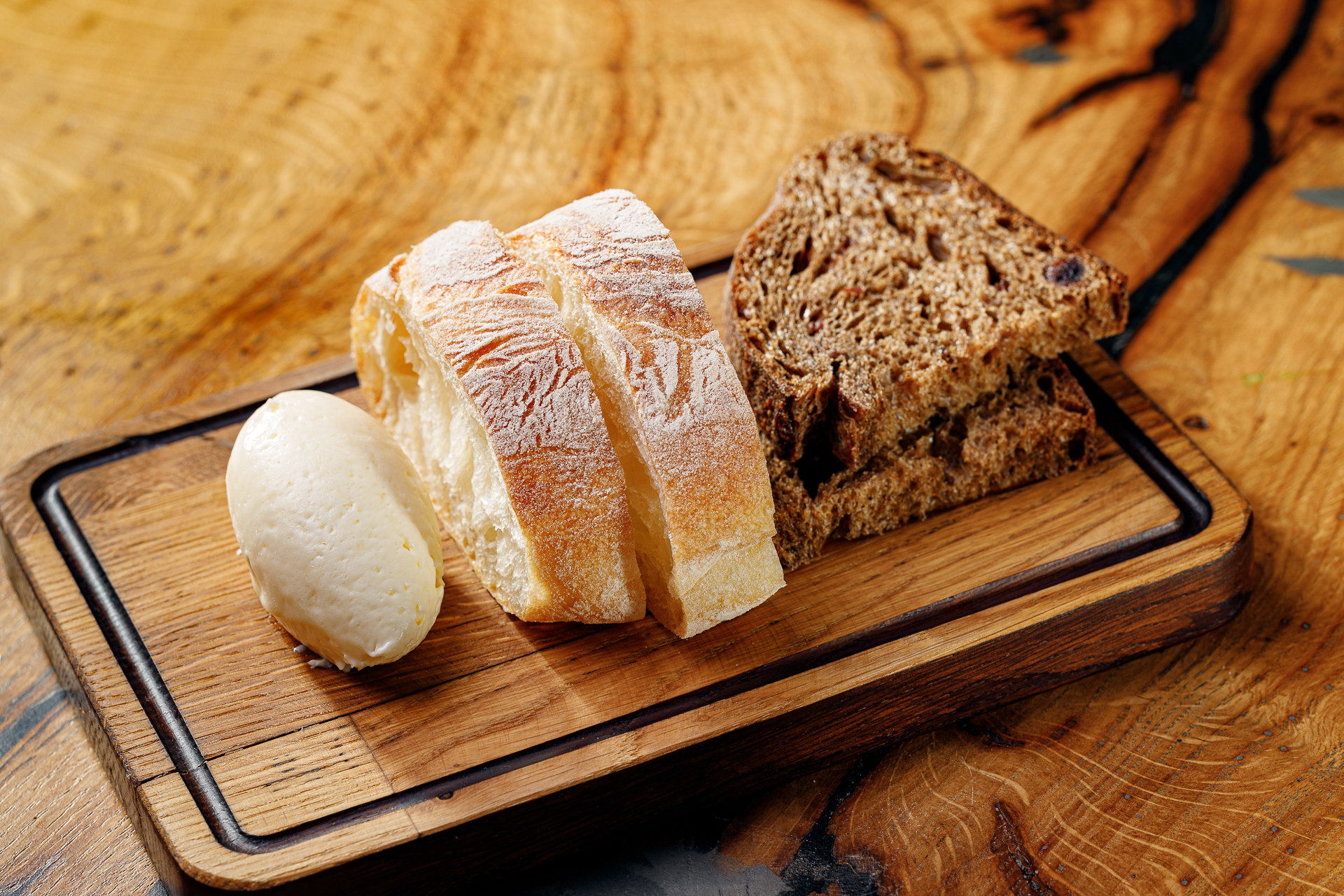 хлеб деревенский, белая чиабатта, воздушное масло